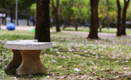 Cement Chair In A Park Green Nature Playground Stock Photo